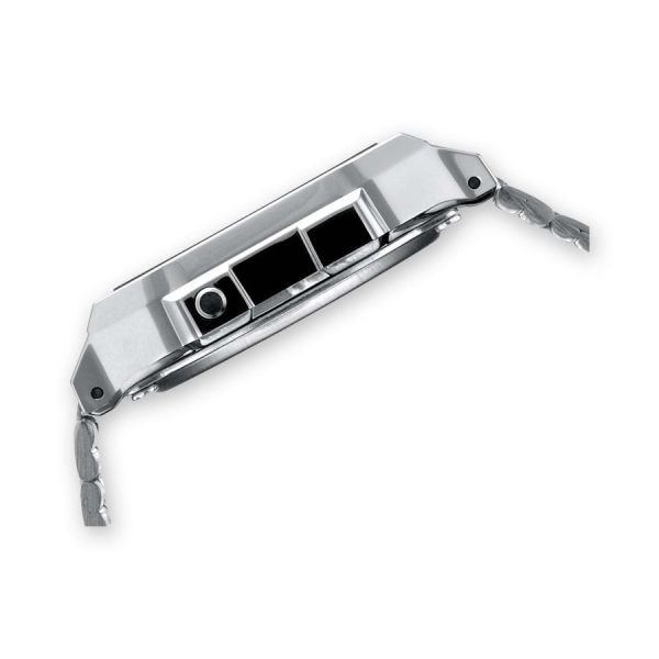 Auf Knopfdruck illuminiert diese stylische Retro Uhr und vereint moderne Features wie Tagesalarm, automatischen Kalender und Stoppuhr mit einer Genauigkeit von Hundertstelsekunden. Der Kontrast zwischen dem Schwarz der Digitalanzeige und dem Silber des Edelstahlarmbandes macht diese Unisexuhr zum Eyecatcher.