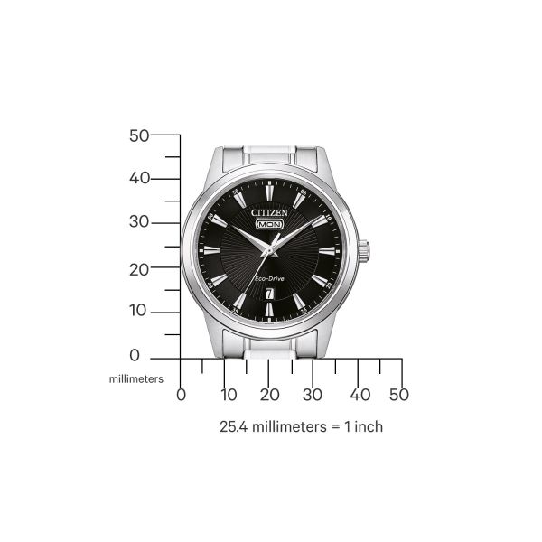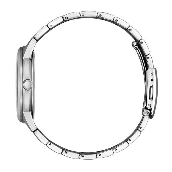 Die Citizen AW0100-86E beeindruckt mit ihrem stilvollen silbernen Edelstahlgehäuse und einem klassischen schwarzen Zifferblatt. Das 40-mm-Gehäuse sorgt für eine angenehme Passform, während die Wasserdichtigkeit von 3 bar sie perfekt für den Alltag macht. Hochwertige Verarbeitung und modernes Design vereinen sich zu einer Uhr, die Qualität und Stil ausstrahlt.
