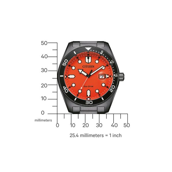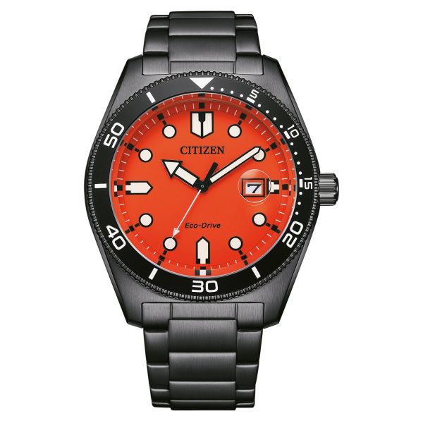 Die Citizen AW1765-88X ist eine solarbetriebene Herrenarmbanduhr mit Eco-Drive-Technologie. Ihr markantes orangefarbenes Zifferblatt, kombiniert mit einem schwarzen Edelstahlgehäuse und -armband, sorgt für einen modernen Look. Wasserdicht bis 10 Bar und mit einer Gangreserve von 240 Tagen ist sie der perfekte Begleiter für den Alltag und sportliche Aktivitäten.