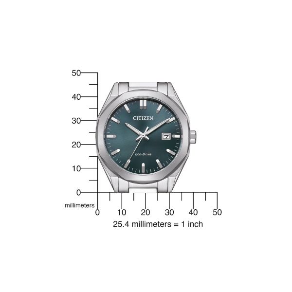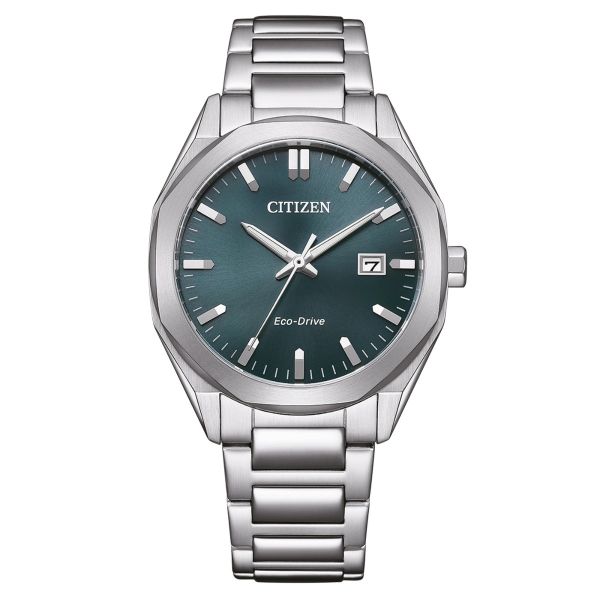 Dieses moderne Dreizeiger-Modell BM7620-83X in Unisex-Größe ist mit einem achteckigem Gehäusering versehen. Mit Edelstahlgehäuse und -armband, Kristallglas und grünem Zifferblatt mit illuminierten Zeigern. Ausgestattet mit dem Kaliber E111 mit Eco-Drive Lichtantrieb, Datumsanzeige, Batterieentladungsanzeige und 10 bar Wasserdichtigkeit. Gehäusedurchmesser: 38 mm, Bandanstoß: 20 mm.
