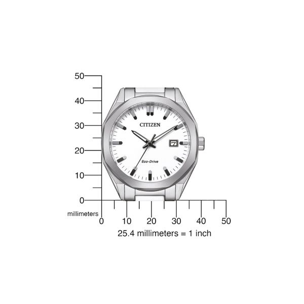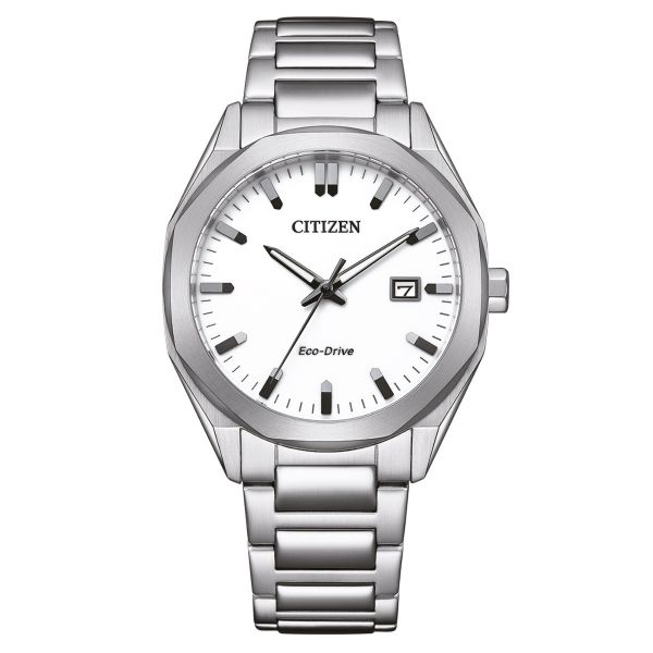 Dieses moderne Dreizeiger-Modell BM7620-83A in Unisex-Größe ist mit einem achteckigem Gehäusering versehen. Mit Edelstahlgehäuse und -armband, Kristallglas und weißem Zifferblatt mit illuminierten Zeigern. Ausgestattet mit dem Kaliber E111 mit Eco-Drive Lichtantrieb, Datumsanzeige, Batterieentladungsanzeige und 10 bar Wasserdichtigkeit. Gehäusedurchmesser: 38 mm, Bandanstoß: 20 mm.
