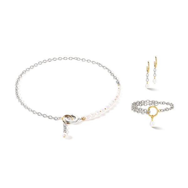 Was gibt es schöneres als Schmuck aus echten Süßwasserperlen? Dieses elegante Design in Bi-Color begeistert durch sein asymmetrisches Spiel aus edler Perle und silberner Edelstahlkette. Ein besonderer Hingucker ist nicht nur der neue, dekorative runde Karabiner, sondern auch die raffinierte Multiwear-Option: Durch das Einhängen des Armbandes, kann die Halskette sowohl lang als auch kurz getragen werden.