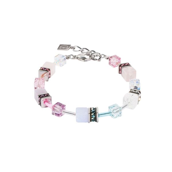 Zart, feminin, modern – das GeoCUBE® Iconic Precious Armband rosa-flieder vereint die sanften Nuancen von Chalzedon, Bergkristall und Rosenquarz mit den funkelnden Reflexionen der Swarovski® Kristall-Würfel. Kühles Edelstahl in Silber sorgt für einen modernen Kontrast, während die harmonische Farbpalette eine leichte, elegante Ausstrahlung verleiht.