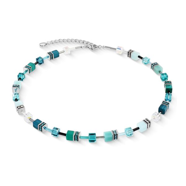 Frisch, modern und unverwechselbar: Die GeoCUBE® Iconic Halskette Teal Silber inszeniert die Trendfarbe des Jahres „Transformative Teal“ in ihrer faszinierendsten Facette. Das Zusammenspiel aus intensivem Blau und tiefem Grün trifft auf kühle silberfarbene Akzente und verleiht dem Design eine ausdrucksstarke, zeitgemäße Eleganz. Die ikonische GeoCUBE® Komposition vereint Würfel aus funkelndem Swarovski® Kristall, schimmerndem Polaris und synthetischem Tigerauge zu einer lebendigen Farbarchitektur mit beeindruckender Tiefe. Präzise Schliffe, seidige Lichtreflexe und metallische Nuancen erzeugen Bewegung und moderne Strahlkraft. Die unterschiedlichen Oberflächen spielen mit Transparenz, Glanz und Struktur – typisch COEUR DE LION. Ob als stilvoller Farbakzent im Alltag oder als elegantes Highlight am Abend – diese Halskette unterstreicht Persönlichkeit mit klarer Geometrie und leuchtender Intensität. Gefertigt aus hochwertigem Edelstahl in Silber überzeugt sie durch langlebige Qualität und angenehmen Tragekomfort. Perfekt kombinierbar mit dem passenden Armband und den Ohrringen der Serie.