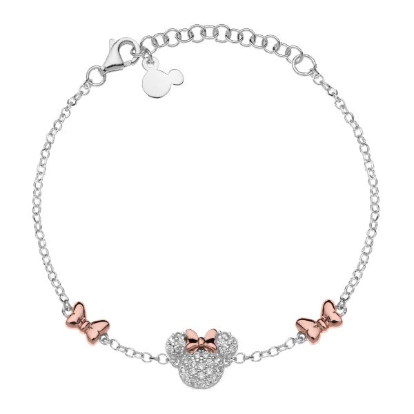 Disney Armband Minnie Maus Silhouette. Dieser ist aus Sterling-Silber rosévergodlet mit weissen Kristallen.