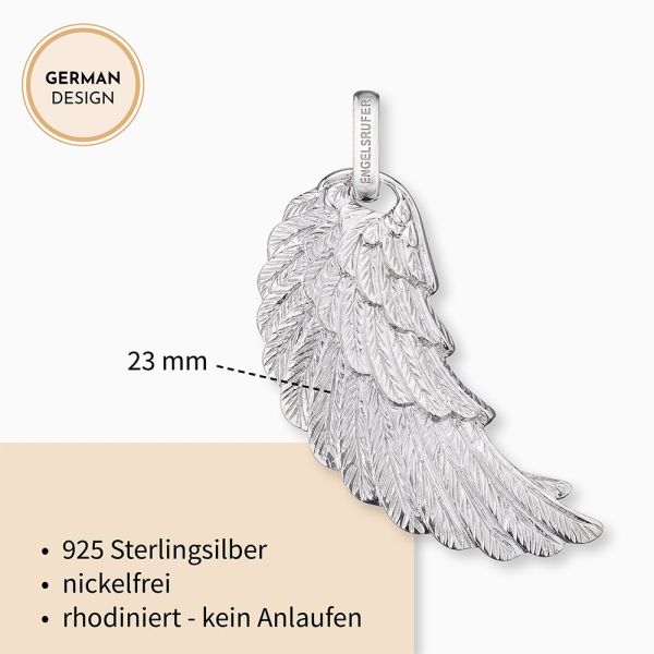 Dein persönlicher Glücksbringer - dieser Flügel Anhänger bietet die optimale Grundlage für individuelle Gestaltungsmöglichkeiten. Der beschützende Flügel hüllt Dich in unendliche Geborgenheit. Das Schmuckstück überzeugt dabei durch die Vielzahl an kleinen Details. Kombiniert mit mehreren Anhängern und Ketten entsteht ein toller Layering-Effekt, der als Duo, Trio oder Quartett eine wunderschöne Symphonie ergibt. Engelsrufer verwendet für seine Schmuckstücke die hochwertigste Legierung 925er Sterlingsilber. Das als weitere Veredelung verwendete Rhodium dient dem angenehmen Tragekomfort und schützt das Schmuckstück vor dem Anlaufen.