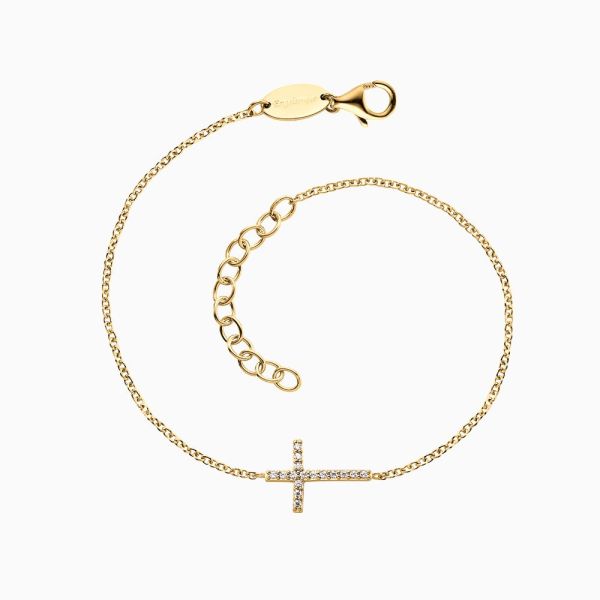 Dein Schutzengel für die Ewigkeit - dieses wunderschöne Engelsrufer Armband mit Kreuz bietet die optimale Grundlage für individuelle Gestaltungsmöglichkeiten. Das Kreuz verbreitet Reinheit und bezaubert mit seiner positiven Wirkung. Ein besonderes Highlight sind die edel schimmernden synthetischen Zirkonia Steine. Denn was könnte femininer sein als strahlend schöne Kristalle umgeben von edlem Gold. Kombiniert mit mehreren Armbändern oder einer Uhr entsteht ein toller Layering-Effekt, der als Duo, Trio oder Quartett eine wunderschöne Symphonie ergibt. Das zeitlose Schmuckstück wird mit einem Karabinerhaken verschlossen und ist in diversen Längen verstellbar. Engelsrufer verwendet für seine Schmuckstücke die hochwertigste Legierung 925er Sterlingsilber. Die als weitere Veredelung aufgebrachte Goldbeschichtung schenkt dem Schmuckstück den unverwechselbaren sanften Farbton und einen angenehmen Tragekomfort.
