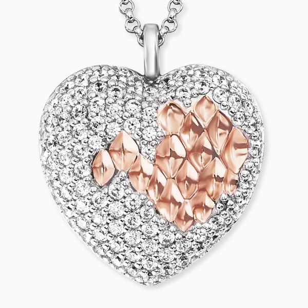 Dear Darling - für einen besonderen Menschen wie gemacht. Dieser funkelnde Anhänger erstrahlt im reinen Glanze durch die Kraft einzelner Zirkonia Steinchen. Ein weiteres Highlight der Kette bilden die roséfarbenen Vertiefungen im Korpus des Herzens, welche den Weg zum Herzen auf symbolischer Weise ebnen. Sie stehen für das Feuer der Liebe. Das zeitlose Schmuckstück wird mit einem Karabinerhaken verschlossen und ist in drei Längen verstellbar. Engelsrufer verwendet für seine Schmuckstücke die hochwertigste Legierung 925er Sterlingsilber. Das auf dem Silber als weitere Veredelung verwendete Rhodium dient dem angenehmen Tragekomfort und schützt es vor dem Anlaufen.
