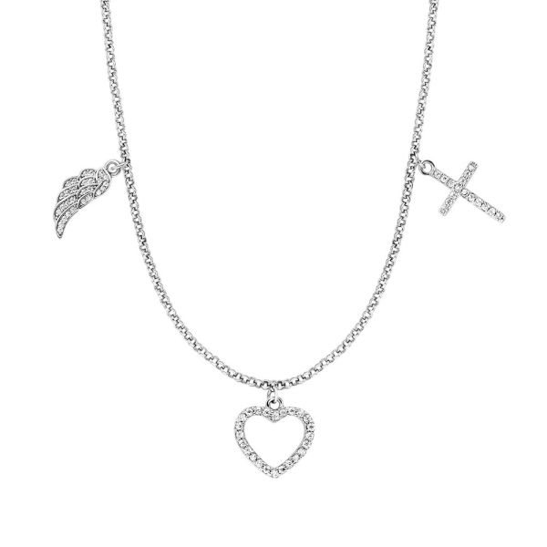 Drei Symbole zum Verlieben – diese zauberhafte Kette mit den Symbolen Kreuz, Herz und Flügel vereint sich zu einer kraftvollen Erscheinung. Motive mit starker Symbolik begleiten Dich Tag für Tag. Ein besonderes Highlight sind die edel schimmernden synthetischen Zirkonia Steine. Denn was könnte femininer sein als strahlend schöne Kristalle umgeben von klassischem Silber. Das Schmuckstück überzeugt dabei durch die Vielzahl an kleinen Details und ist ideal mit weiteren Armbändern kombinierbar. Engelsrufer verwendet für seine Schmuckstücke die hochwertigste Legierung 925er Sterlingsilber. Das auf dem Silber als weitere Veredelung verwendete Rhodium dient dem angenehmen Tragekomfort und schützt es vor dem Anlaufen.