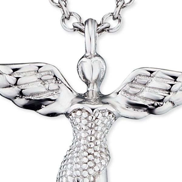 Dein Schutzengel für die Ewigkeit - diese filigrane Kette mit unserem Engel Anhänger schenkt Dir Glück und passt dabei wunderbar zu jedem Outfit. Engel sind himmlische Beschützer in jeder Lebenslage, sie geben Dir das Gefühl von Sicherheit und unendlicher Geborgenheit. Dein Engel breitet seine schützenden Flügel über Dich und steht Dir immer zur Seite. Ein besonderes Highlight sind die edel schimmernden synthetischen Zirkonia Steine. Denn was könnte femininer sein als strahlend schöne Kristalle umgeben von klassischem Silber.