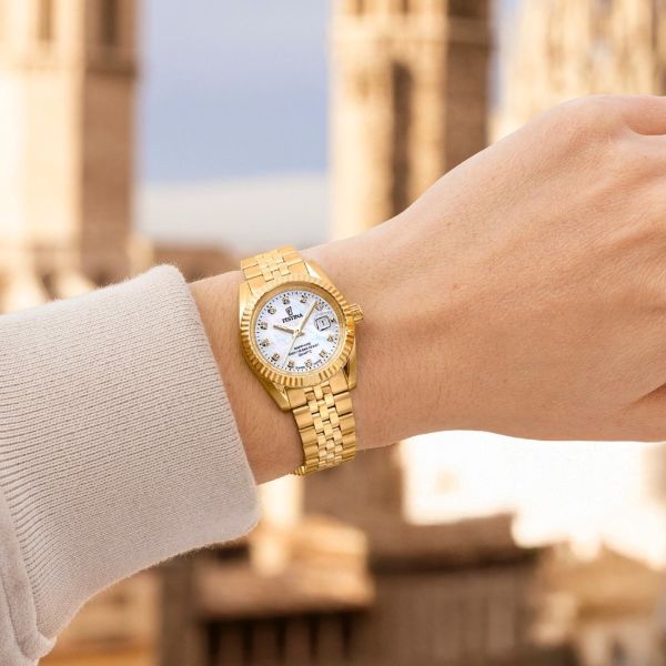 Festina Damen-Uhr Swiss Made Quarz Edelstahl-Armband Gold-Ton F20089/1
