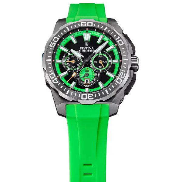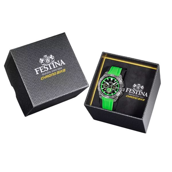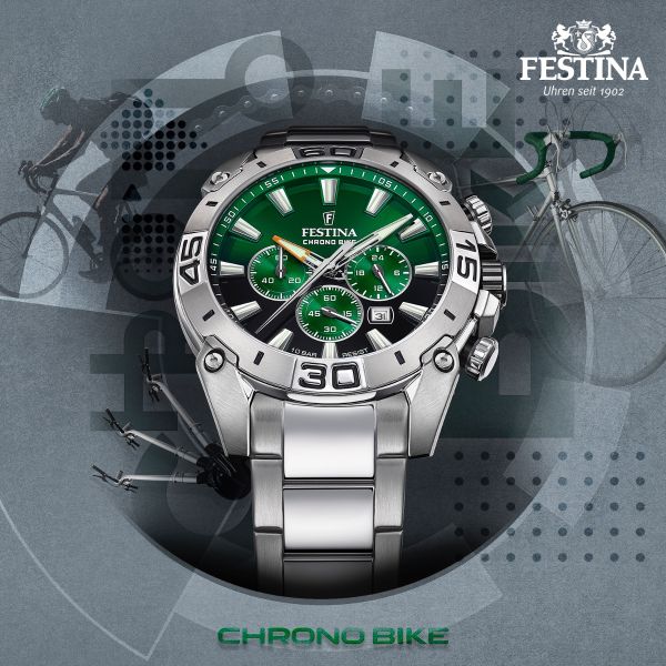Die Legende geht weiter Festina präsentiert die ikonische Chrono Bike Kollektion, die am sehnlichsten erwartete und dank ihrer hochwertigen Materialien, prestigeträchtigen Oberflächen und Verweise auf die Welt des Radsports, von den Fans am meisten geschätzte Kollektion. Sie besticht durch den großen Charakter ihrer Linie: Eine große Auswahl an Zifferblattfarben kombiniert mit matten und glänzenden Details, verpackt in einem sportlichen Look.