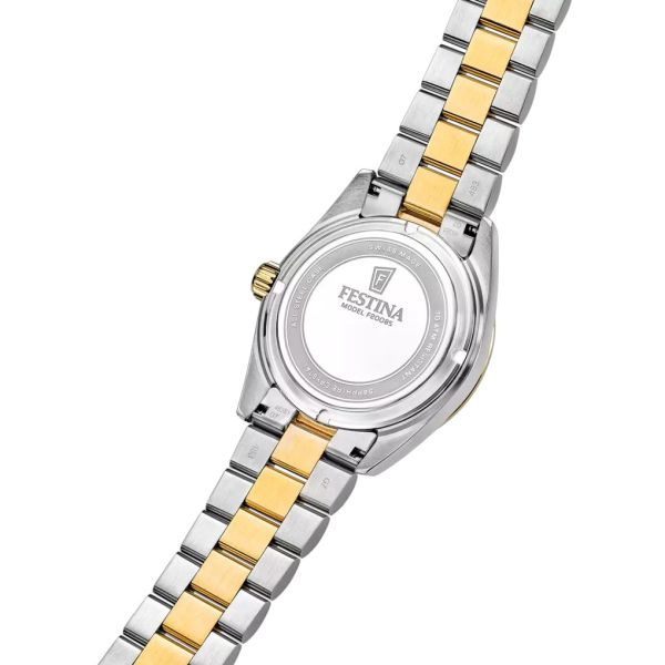 Die Festina Swiss Made Herrenuhr F20085/A vereint klassische Eleganz mit hochwertiger Schweizer Uhrmacherkunst. Das Edelstahlgehäuse mit zweifarbiger Ausführung in Silber‑ und Goldton wird durch ein kratzfestes Saphirglas ergänzt und sorgt für eine edle, langlebige Optik. Das zweifarbige Edelstahlarmband in Silber und Goldton unterstreicht den stilvollen Charakter der Uhr, während das goldfarbene Zifferblatt mit Datumsanzeige für eine zeitlos elegante Ausstrahlung sorgt. Ideal für Männer, die Wert auf Qualität, Stil und klassische Raffinesse legen.