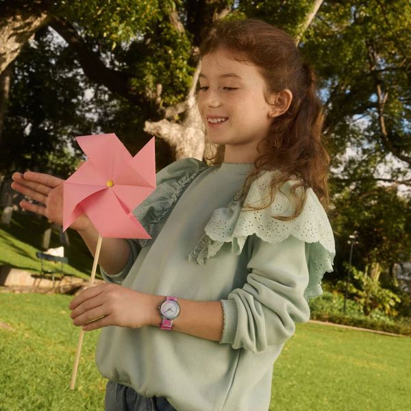 FLIP IT PINK! ist eine knallige Kinderuhr mit Kristallen in Sternform und einem bunten Wendearmband. Das lehrreiche Design hilft Kindern, auf spielerische Weise die Uhrzeit zu lernen, und macht die Uhr zu einem Geschenk, das garantiert gut ankommt.