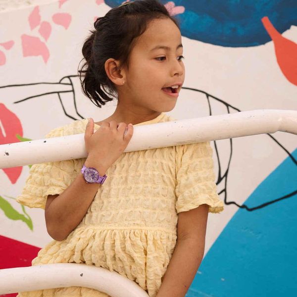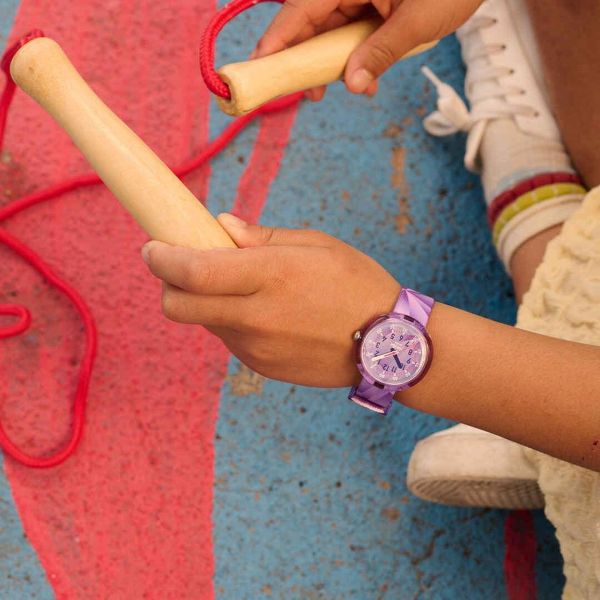 Flik Flak Mädchen-Uhr Purple Prism Analog Quarz Textil-Band FPNP167