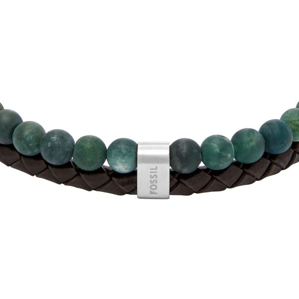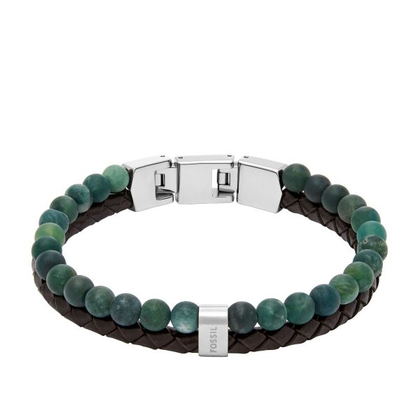 Verleihen Sie Ihrem Stil das gewisse Extra mit dem Fossil Herren Multistrang-Armband. Dieses stilvolle Accessoire besticht durch eine raffinierte Kombination aus poliertem Edelstahl und hochwertigem Leder. Das Armband präsentiert ein einzigartiges Multistrang-Design, verziert mit modischen grünen Beads, die jedem Outfit das gewisse Etwas verleihen. Ob für besondere Events oder zwanglose Treffen mit Freunden – dieses Armband ist die perfekte Ergänzung für Ihren Look.