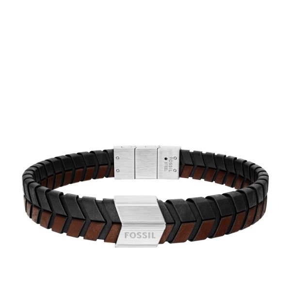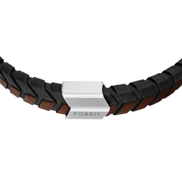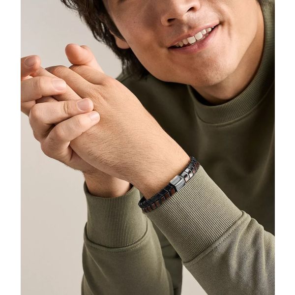 Fossil Armband Herren Braunes Leder Geflochten Edelstahl JF04984040