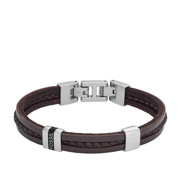 Fossil Armband Herren Essentials Braunes Leder Edelstahl JF04133040