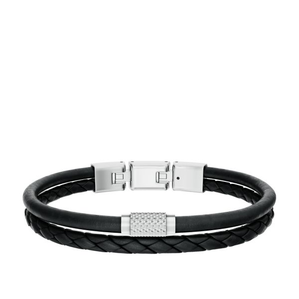 Fossil Armband Herren Machine Geriffeltes Leder Schwarz JF04989040