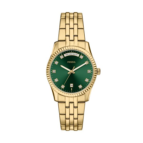 Fossil Damen-Uhr Scarlette Analog Quarz Edelstahl-Band Gold-Ton ES5460