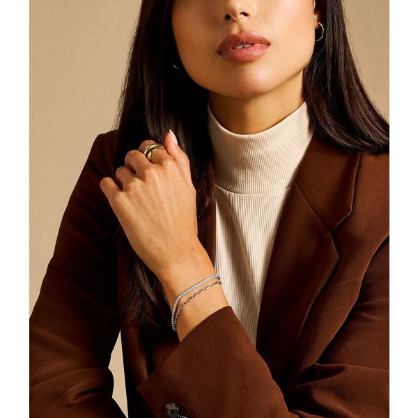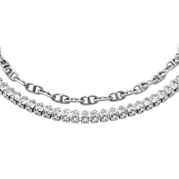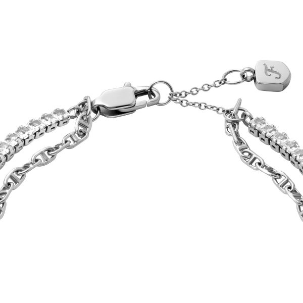 Ausgefallene, zeitlose Designs zeichnen unsere Schmuckkollektion Fossil Heritage aus – und diese Styles sind keine Ausnahme. Dieses markante, flache Armband hat Heritage D-Links und weiße Glassteine. Trage es als Statement-Piece oder im Layering Look mit Deinen Favoriten.