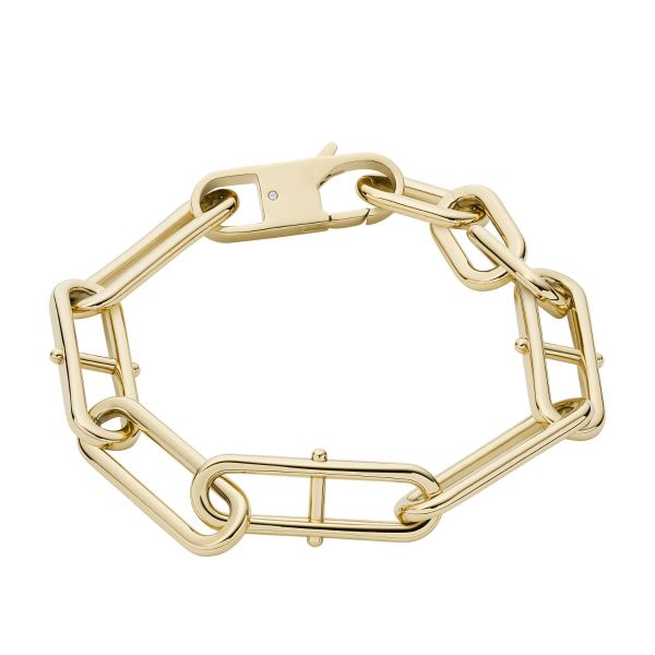 Eleganter Damen Gliederarmband von Fossil aus gelbgoldfarbenem Edelstahl.