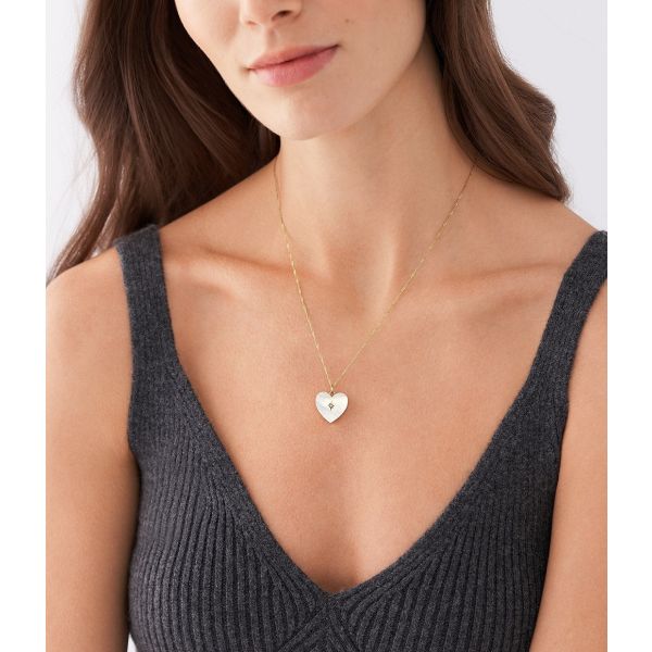 Fossil JF04430710 Halskette mit Anhänger Damen Locket Heart Perlmutt Gold-Ton