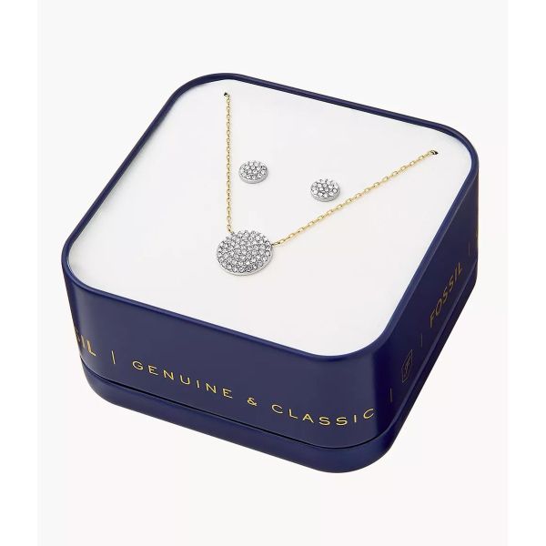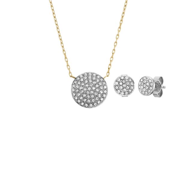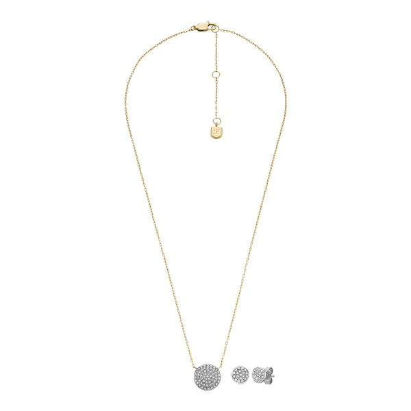 Fossil Set-Kette-Ohrringe Ellis Glitz Disc Edelstahl Gold JF04815SET