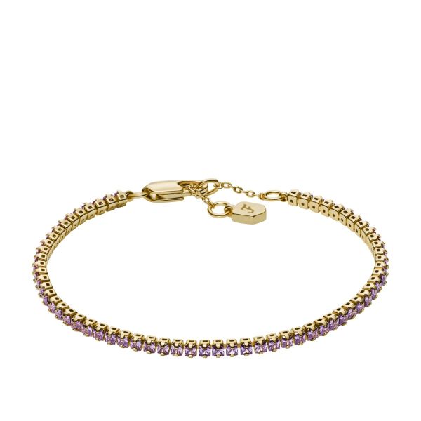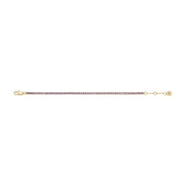Dieses polierte, goldfarbene Tennisarmband ist mit Akzenten aus Glasstein-Pavé in einem kräftigen Amethystton verziert, die dem zeitlosen Design einen funkelnden Akzent verleihen. Ein Karabinerverschluss sorgt für einen sichere Passform und ergänzt die klassische Silhouette.