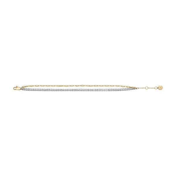 Verleihe Deinem Stack mit diesem Tennisarmband einen traditionellen Look. Die Edelstahlkette hat unsere ikonischen D-Glieder und wird durch eine Tenniskette mit transparenten Glassteinen ergänzt, die dem modernen Klassiker einen Hauch von Glamour verleiht. Ein verstellbare Karabinerverschluss sorgt für den perfekten Sitz. Trage das Accessoire mit anderen Armreifen oder lass es solo glänzen.