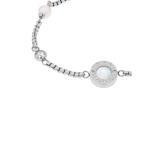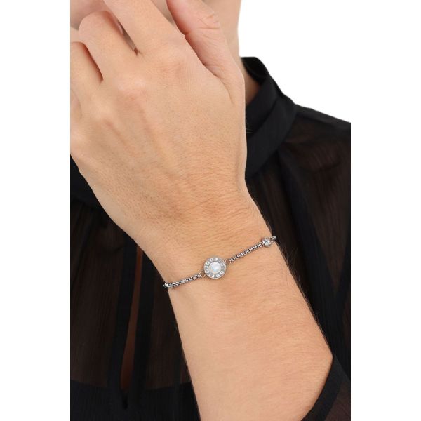 Mit feinen Zirkonia-Ziersteinen und einer dekorativen Glasperle begeistert das Armband als feminines Accessoire – stilvoll ergänzt durch die Veneziagliederung und einen klassischen Karabinerverschluss. Das Schmuckstück aus Edelstahl lässt sich individuell gravieren und wird in einer passenden Box im Signature-Look geliefert, perfekt als Geschenk für verschiedene Anlässe.