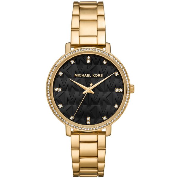 Die Michael Kors Pyper MK4916 ist eine elegante Damenuhr im luxuriösen Gold-Ton, die Ihrem Look eine glamouröse Ausstrahlung verleiht. Ihr 38 mm Gehäuse, verziert mit funkelnden Kristallen, fängt bei jeder Bewegung das Licht ein und sorgt für einen atemberaubenden Akzent. Das edle schwarze Zifferblatt ergänzt das goldene Design perfekt und bildet einen eleganten Kontrast. Mit 3 Bar (30 Meter) Wasserdichtigkeit ist sie gegen Spritzwasser geschützt und somit ideal für den täglichen Gebrauch. Ein zeitloses Statement-Piece, das Stil und Funktionalität harmonisch vereint.