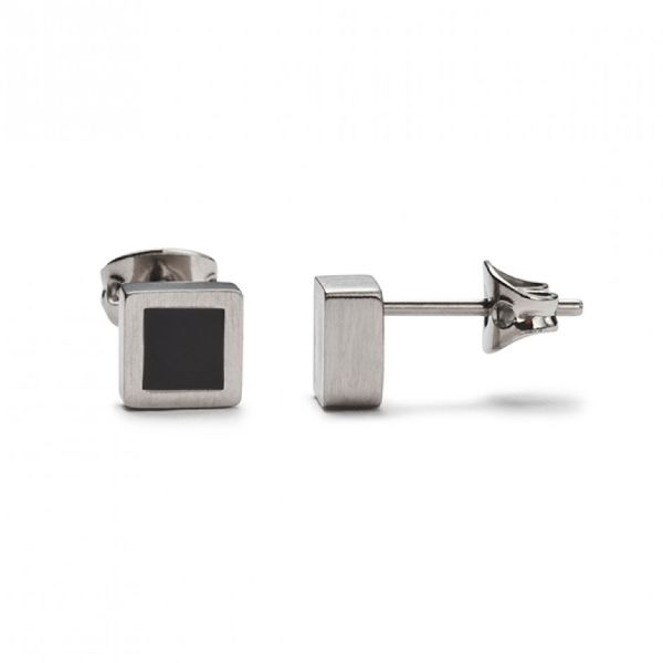 Ausdrucksstarke, quadratische Ohrstecker (ca. 6 x 6 mm) aus gebürstetem, antiallergenem Edelstahl mit schwarzer Edelharzeinlage. Auch für Allergiker geeignet. Jedes Schmuckstück wird mit einer dekorativen Metallbox geliefert.