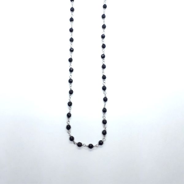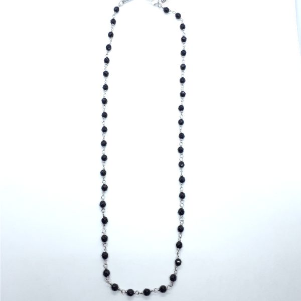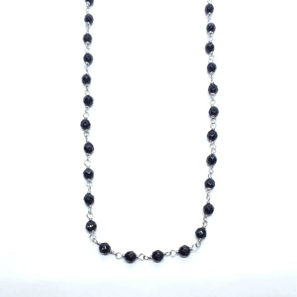 Sehr schöne Damen-Halskette (ca. ø 4 mm) aus antiallergenem Edelstahl mit facettierten Onyxkugeln.