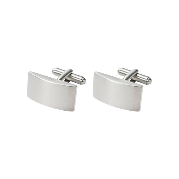 Elegante, rechteckige, gebürstete Manschettenknöpfe (ca. 13 x 24 mm) aus antiallergenem Edelstahl mit Klappmechanik von MONOMANIA. Jedes Schmuckstück wird mit einer dekorativen Metallbox geliefert.