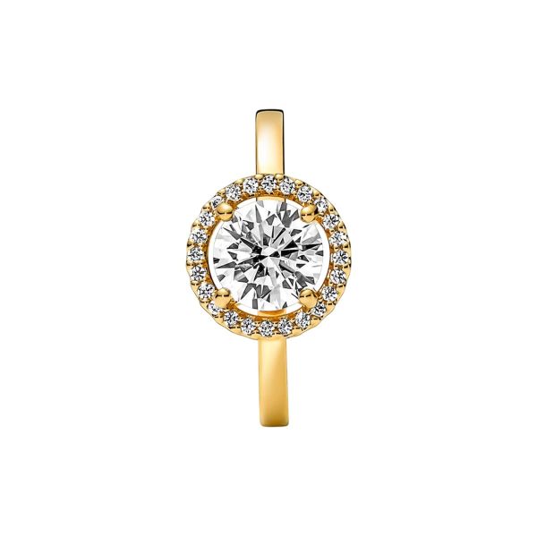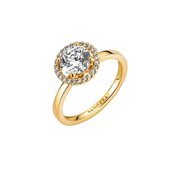 Der klassische und doch moderne 14 Karat vergoldete Funkelnder Runder Strahlenkranz Ring hat einen runden Mittelstein, der von einem Strahlenkranz aus klarem Cubic Zirkonia-Pavé im Brillantschliff umgeben ist. Auf der Innenseite der Ringschiene ist das Pandora-Logo eingraviert. Ein zeitloses Geschenk für eine elegante Mutter.