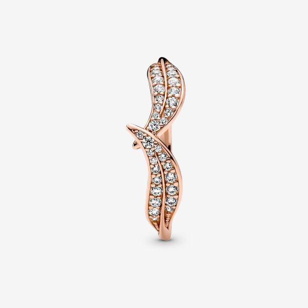 Trage mit dem Funkelnde Blätter Ring eine funkelnde Hommage an die Natur. Dieser Ring aus 14 Karat rosévergoldetem Metall ist handveredelt und besteht aus zwei einander zugewandten Blättern. Die Blätter sind mit Reihen von klarem Cubic Zirkonia-Pavé im Brillantschliff verziert. Mit ihrer subtil geschwungenen Silhouette und den sich leicht kreuzenden Spitzen haben die Blätter eine fließende Eleganz, die jeden Look aufwertet. Wenn Du die Natur und auch den funkelnden Stil liebst, ist dieser Ring mit Blättern genau das Richtige für Dich.