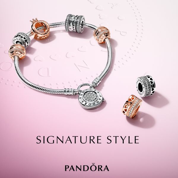 Umkehrbarer PANDORA Logo Ring aus Sterling-Silber, besetzt mit 32 klaren Cubic Zirkonia. Dieser Ring hat bewegliche Elemente und kann so verschiedenen Styles erzeugen.