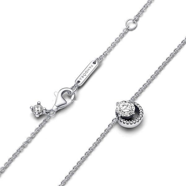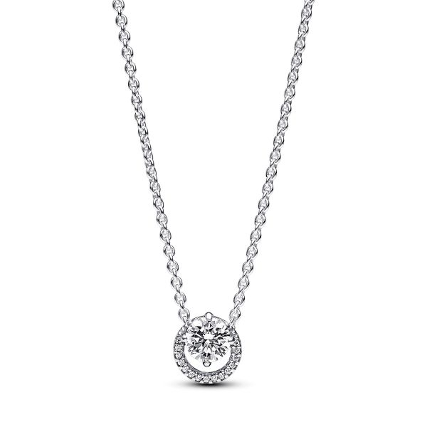 Die mit klaren Cubic Zirkonia besetzte Funkelnder Runder Strahlenkranz Collier-Halskette aus Sterling-Silber verkörpert zeitlose Eleganz und die ewige Schönheit von Kreisen. Der Anhänger hat einen runden Schmuckstein in Krappenfassung, der einen pavé-besetzten Strahlenkranz zart überlappt, sodass er frei entlang der verstellbaren 38 cm, 42 cm oder 45 cm langen Ankerkette gleiten kann. Mit einem eingravierten Pandora Logo und einem hängenden Stein am Karabinerverschluss verleiht diese Halskette jedem Look Raffinesse. Ein perfektes Geschenk für alle, die klassische Schönheit und Eleganz schätzen.