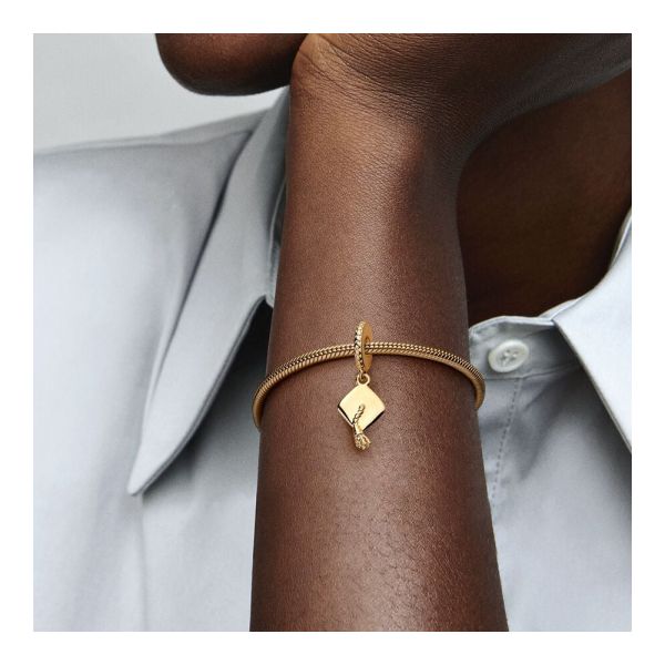 Feiere ihre harte Arbeit und ihr Engagement mit dem Schulabschluss-Mütze Charm-Anhänger. Dieser vergoldete Charm-Anhänger ist mit einer Schulabschluss-Mütze mit einer realistisch aussehenden gerillten Quaste versehen, die Mütze selbst ist mit der eingravierten Botschaft „Hard work pays off“ verziert. Der Verbindungsring ist mit einem Muster aus aufgeprägten Herzen verziert. Das perfekte Schmuckgeschenk für die frischgebackenen Absolventen in deinem Leben – um ihnen zu ihrer Leistung zu gratulieren und sie an ihr Potenzial zu erinnern, was auch immer als nächstes ansteht.