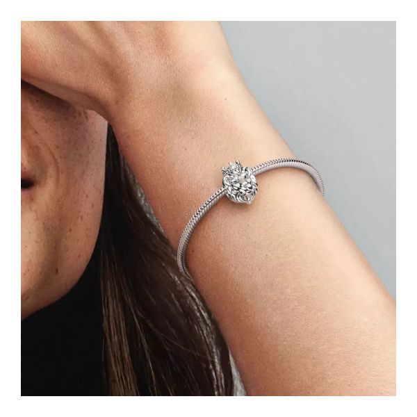 Verleihe deinem Look einen königlichen Touch mit unserem Königlicher Löwe Charm. Dieses Sterling-Silber Charm ist von dem Symbol für Majestät und Mut inspiriert und mit erhabenen und gerillten Details auf Gesicht und Mähne verziert. Der König des Dschungels trägt eine fünfzackige Krone, die mit funkelnden Cubic Zirkonia verziert ist. Style dieses Charm an deinem Armband und bringe deine königliche Seite zum Strahlen.