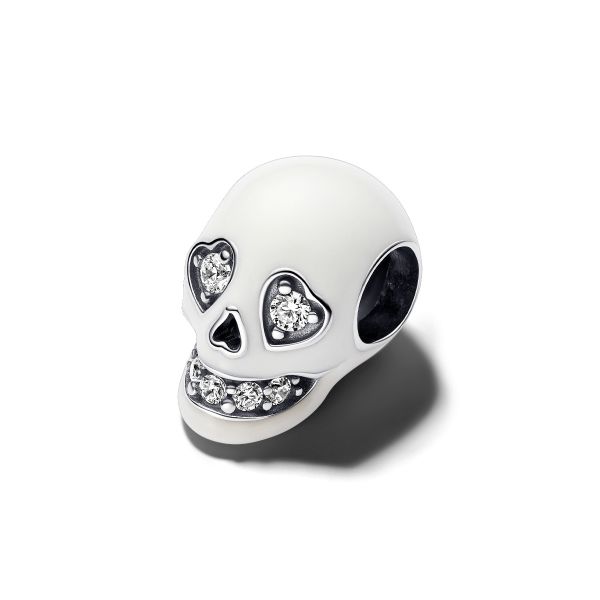 Verleihe deinem Look einen Hauch von Extravaganz, wenn du das Glow-in-the-dark Funkelnder Totenkopf Charm trägst. Dieses Charm aus Sterling-Silber zeigt einen Totenkopf, der mit im Dunkeln leuchtender Emaille überzogen ist, mit einem Mund und herzförmigen Augen, die mit klaren Cubic Zirkonia-Schmucksteinen funkeln. Ausgestanzte Details schmücken Mund, Nase und Unterseite des Schädels. Feiere das Geheimnis des Lebens nach dem Tode und verleihe deinem Styling mit diesem Totenkopf-Anhänger einen leuchtenden Touch.