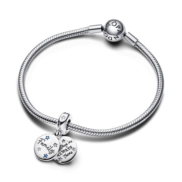 Mit dem Geliebte Familie Doppelter Charm-Anhänger kannst du deine Liebsten immer bei dir tragen. Ein Charm aus Sterling-Silber mit zwei Anhängern, die eine Geschichte erzählen. Die Schmuckstücke tragen die liebevollen Worte: „Family... are like STARS, you don't always see them... But they are ALWAYS there“. Dieser Charm-Anhänger ist mit klaren Cubic Zirkonia in eingeriebener Fassung und blauen künstlichen Kristallen verziert, die wie kleine Sterne funkeln. Trage sie an deiner Lieblingskette und erinnere dich immer an die Menschen, du dir am nächsten stehen.