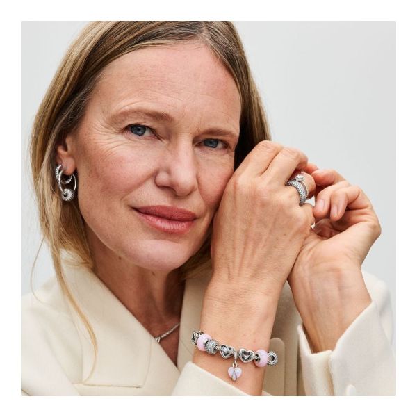 Feiere deine Mutter mit dem Pandora Mum Schillernder Herz Charm-Anhänger. Dieses herzerwärmende Charm aus Sterling-Silber ist mit einem herzförmigen rosafarbenen, im Labor hergestellten Opal verziert, der mit einem Farbspektrum und glitzernden Streifen verziert ist. Das filigrane Design hat überlappende Silberlinien, die einen Biegering bilden, eine zarte herzförmige Scheibe mit der Gravur „Mum“ und eine Reihe von Pavé-Schmucksteinen für zusätzlichen Glanz. Feiere die Schönheit der Mutterschaft mit einem Charm, das ihre Fülle und facettenreichen Geschichten einfängt.