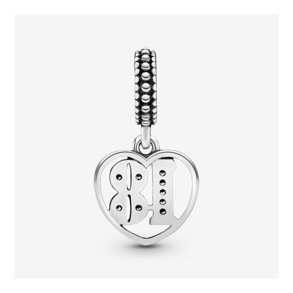 Mit unserem Design für junge Erwachsene wird Dein 18. Geburtstag ein ganz besonderer. Der herzförmige Sterling-Silber Anhänger ist mit einem perlenbesetzten Ring versehen und mit Steinchen in Form der Zahl 18 besetzt, die äußeren Ränder sind mit ausgestanzten Herzen verziert. Dieses perfekte Geschenk für den Start ins Erwachsenenleben sieht an Deinem Pandora Moments Armband genauso cool aus wie an Deiner Halskette.
