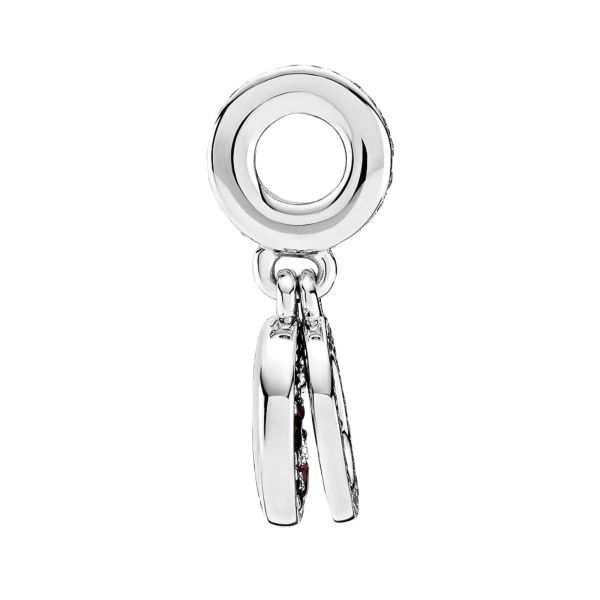 Bringe Farbe in Deine Kollektion mit dem Funkelnde Rote Scheibe Doppelter Charm-Anhänger. Das von Hand veredelte Design aus Sterling-Silber hat eine hintere Scheibe, die mit Perlen und roten Steinen in verschiedenen Größen verziert ist. Auf der Rückseite der Scheibe befinden sich das Pandora Logo und das Crown O-Monogramm. Der vordere Kreis bildet mit klaren Cubic Zirkonia einen schönen Kontrast. Dieses Schmuckstück verströmt gemeinsam mit anderen farbenfrohen Charms auf Deinem Pandora Moments Armband ein besonderes Flair.