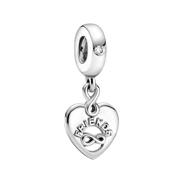 Entdecke ein besonderes Charms für Deine beste Freundin mit dem Freunde für immer Herz Charm-Anhänger. Dieser herzförmige Anhänger ist aus Sterling-Silber handveredelt und hat ein ausgestanztes asymmetrisches Unendlichkeitszeichen und „Friends“ in erhabener Schrift auf der Vorderseite und der Gravur „Forever“ auf der Rückseite. Ein weiteres Unendlichkeitszeichen verbindet den Anhänger mit dem Aufhänger, der einen funkelnden klaren Stein hat. Lass Deine beste Freundin mit diesem Stück wissen, dass eure Freundschaft ein Leben lang dauern wird.