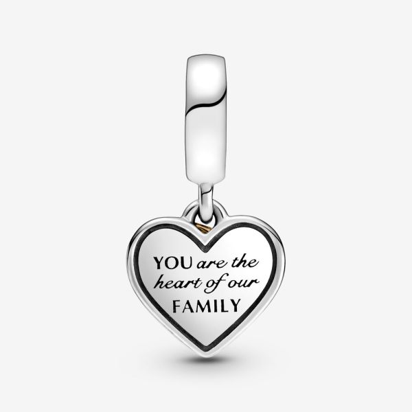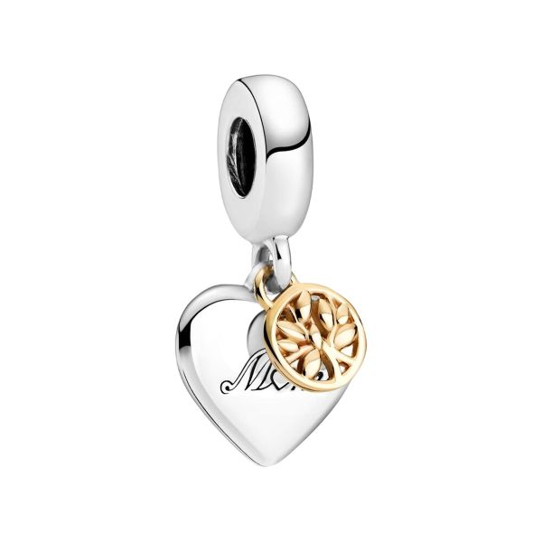 Der Zweifarbiger Stammbaum & Herz Charm-Anhänger erinnert Dich an die Beziehung zwischen Dir und Deiner Mutter. Dieses handveredelte Design aus Sterling-Silber und 14 Karat Gold besteht aus einem Herzanhänger. Vorne trägt er die Gravur „Mum“, wobei das „U“ durch ein Herz ersetzt wurde. Auf der Rückseite steht „You are the heart of your family“. Der vordere Anhänger aus 14 Karat Gold zeigt einen runden Rahmen mit einem offenen gearbeiteten Familienstammbaum. Überrasche Deine Mutter mit diesem Schmuckstück, damit sie Deine Liebe stets bei sich tragen kann.