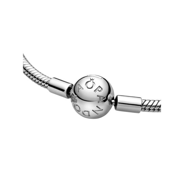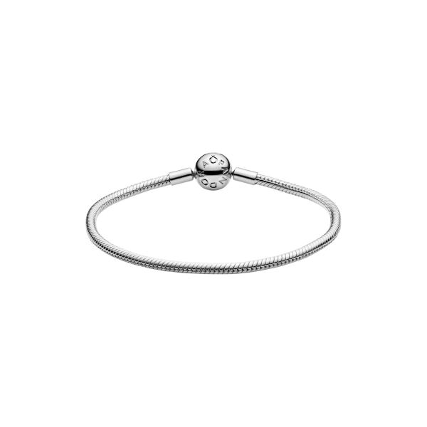 Schreibe Deine eigene Pandora Geschichte mit diesem filigranen Snake Chain Armband aus poliertem Sterling-Silber. Bei diesem von Hand veredelten Armband kannst Du Deiner Kreativität freien Lauf lassen und es auf zahlreiche Art und Weise gestalten. Versehe es mit Deinen Lieblingscharms und Lieblingsclips, trage es alleine für einen einfachen, dezenten Look oder kombiniere es mit anderen Armbändern für ein hübsches Spiel der Texturen. Zu diesem Armband passen nur Sicherheitsketten-Clips mit Silikoneinlage.