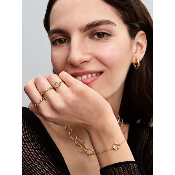 Feiere die Individualität mit einem besonderen Armband, das organische Formen und Pavé-Details kombiniert. Eine behandelte Süßwasserzuchtperle ist in einem Kreis eingefasst und symbolisiert die Freiheit des Ausdrucks.